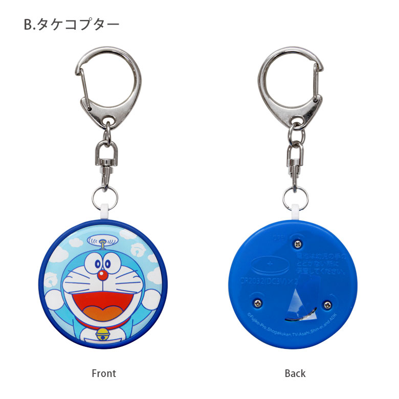 [ラインナップ] アップ (DR-52A) タケコプター (DR-52B) [メーカー] 株式会社グルマンディーズ塾帰りや通学、ひったくり防止に最適! ドラえもんの可愛い防犯ブザーが新登場! 名称 ドラえもん 防犯ブザー 使い方 ご使用の際は、ブザー裏側の絶縁テープを取り除いた後、ブザー本体を引っ張ると大きな音が鳴ります。